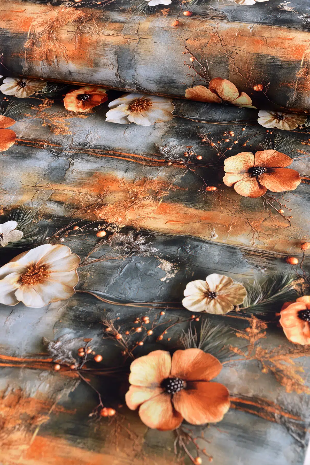 Ürün Adı: 3D Gri Zemin Sonbahar Çiçeği Faal %100 Pamuk 1797