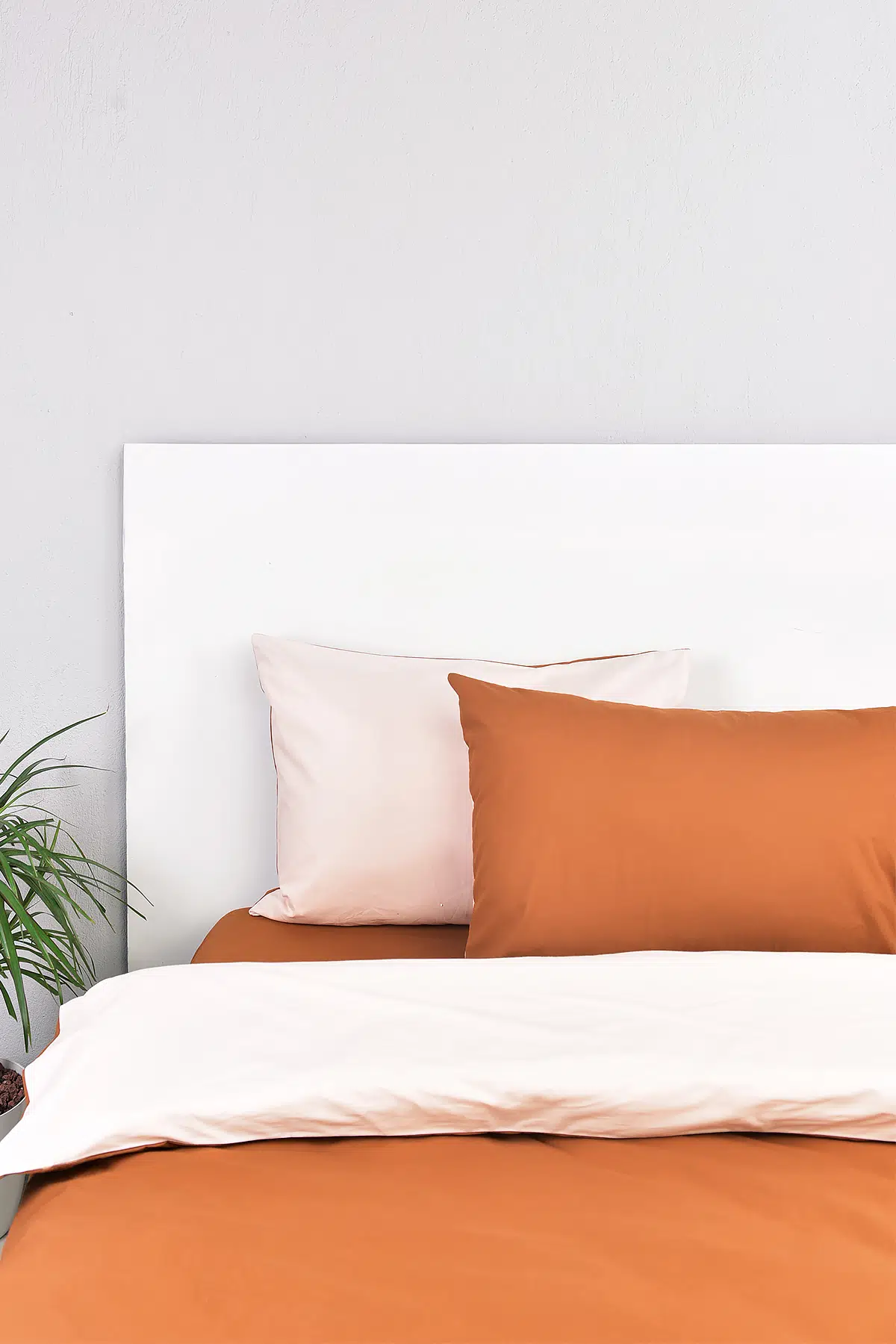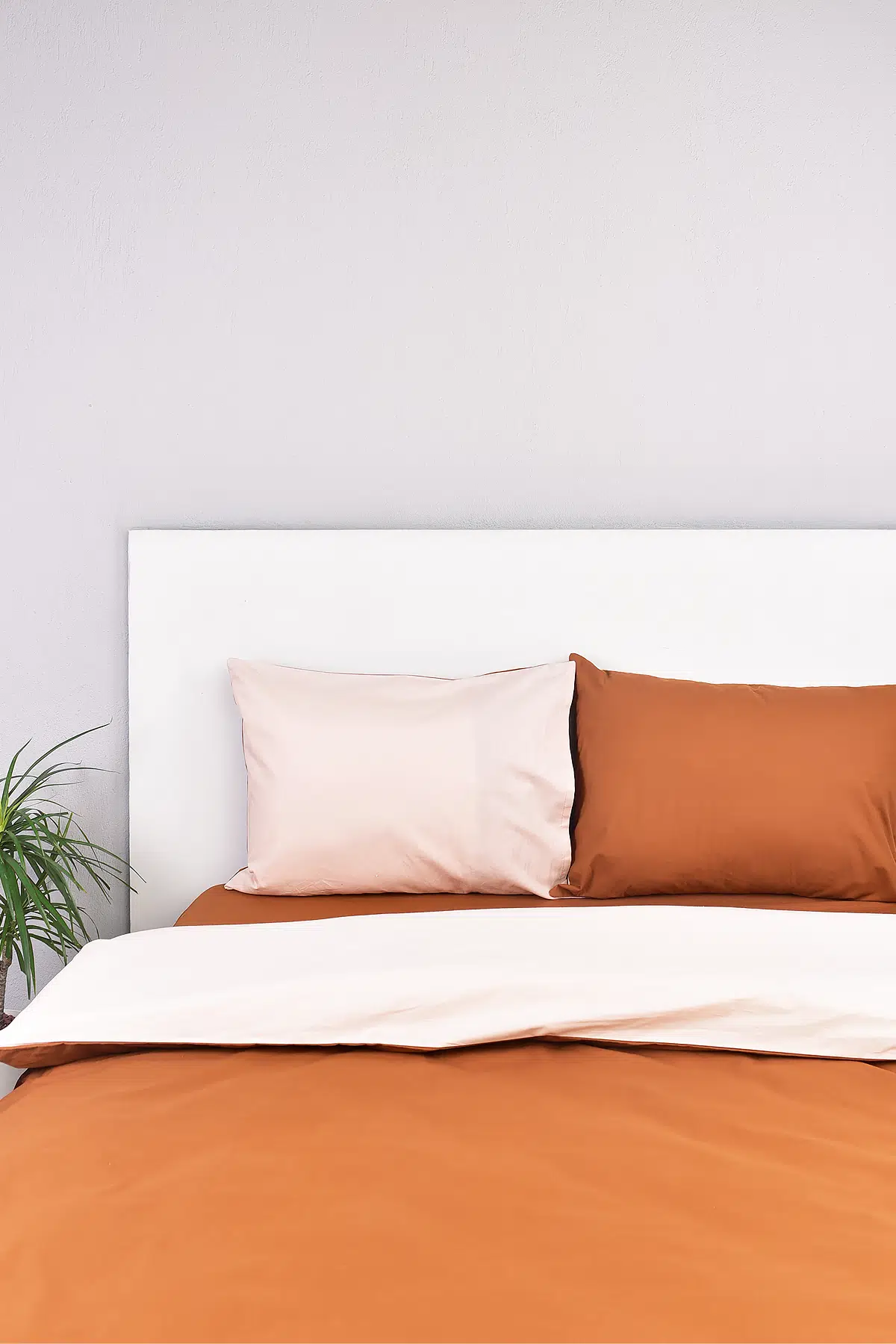 Ürün Adı: Çift Taraflı Çift Kişilik Nevresim Takımı Krem Taba %100 Pamuk
