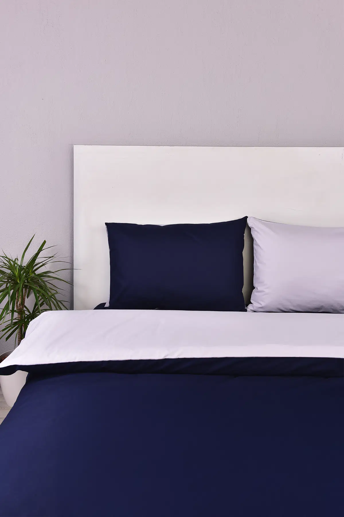 Ürün Adı: Çift Taraflı Çift Kişilik Nevresim Takımı Lacivert Gri %100 Pamuk