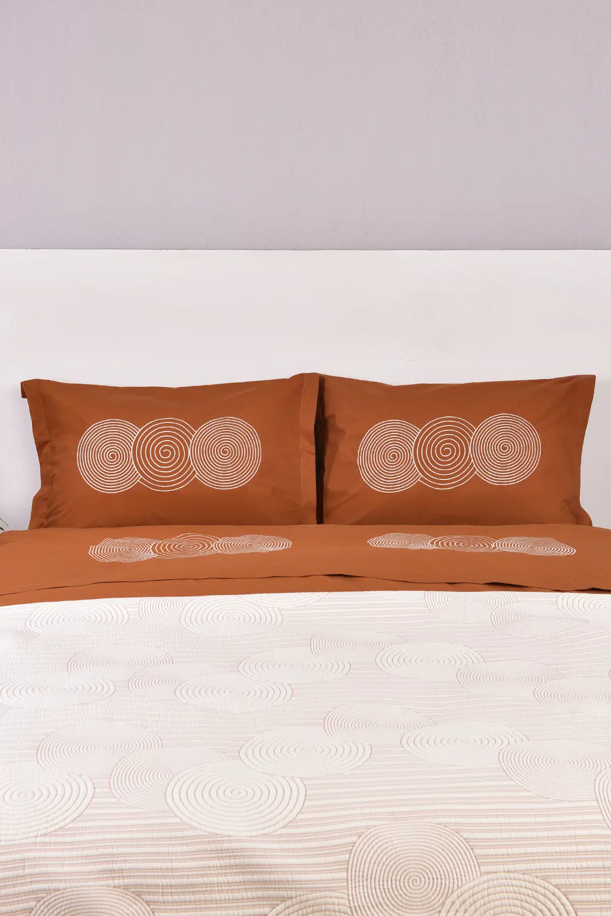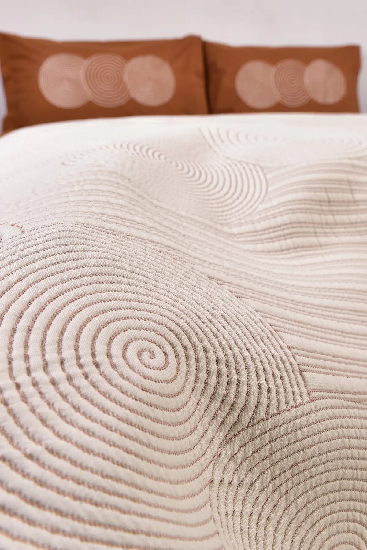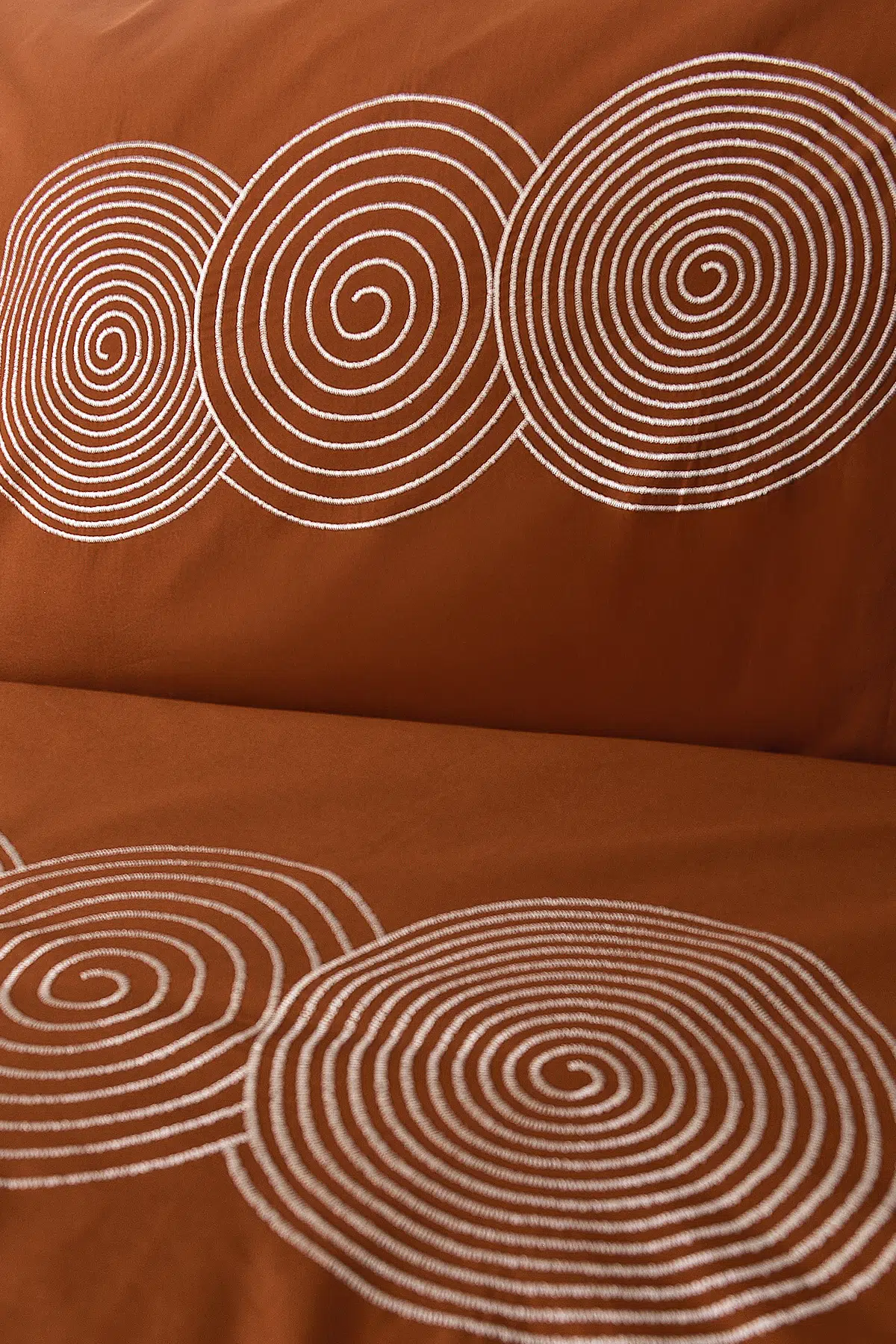 Ürün Adı: Dairesel İşlemeli Çift Kişilik Yatak Örtülü Nevresim Takımı Taba %100 Pamuk