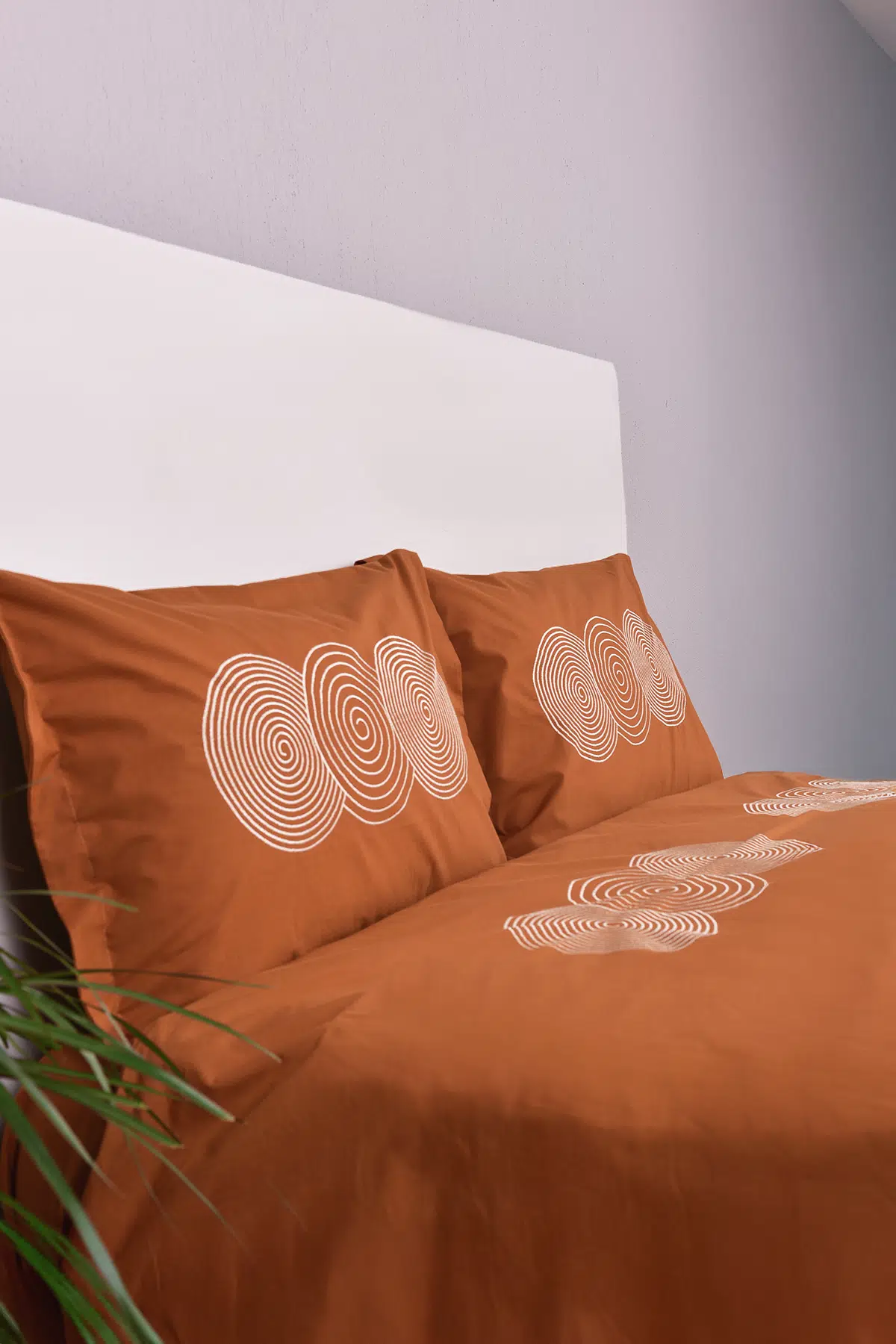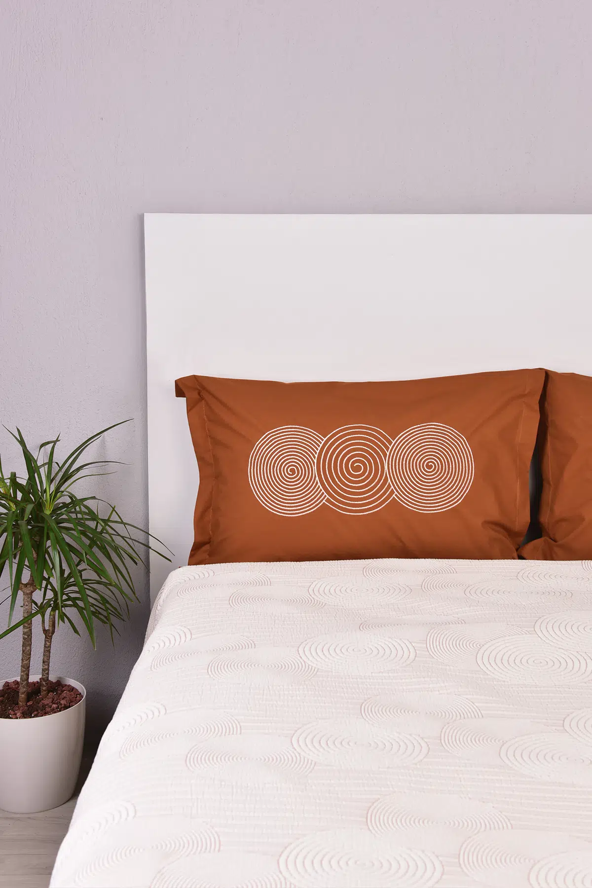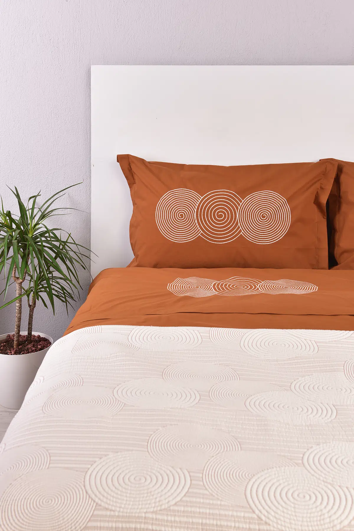 Ürün Adı: Dairesel İşlemeli Çift Kişilik Yatak Örtülü Nevresim Takımı Taba %100 Pamuk